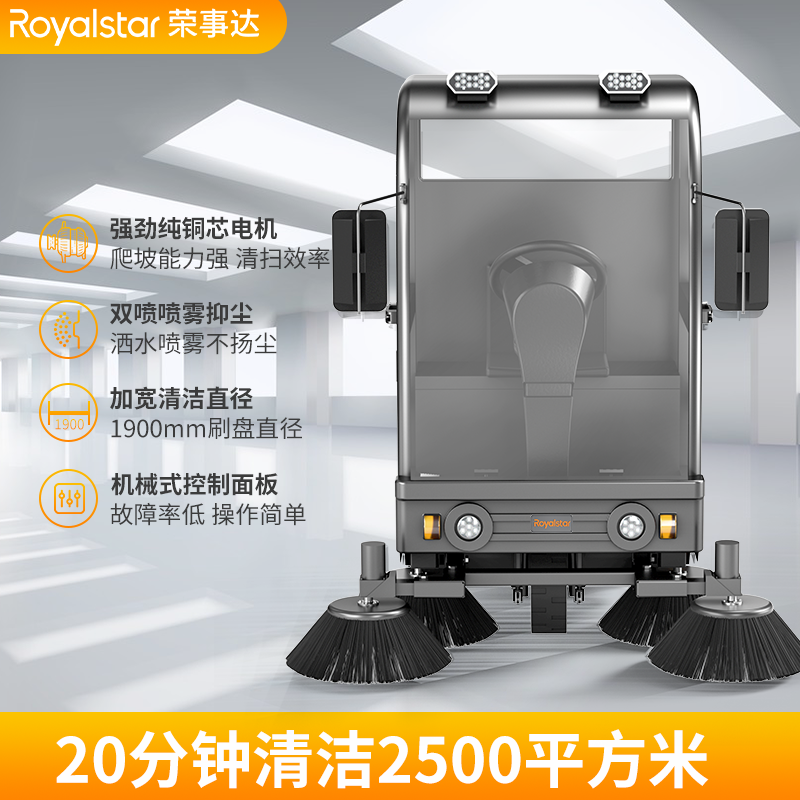榮事達RS-CAR180駕駛式掃地車鋰電款,充電時長4小時即可。