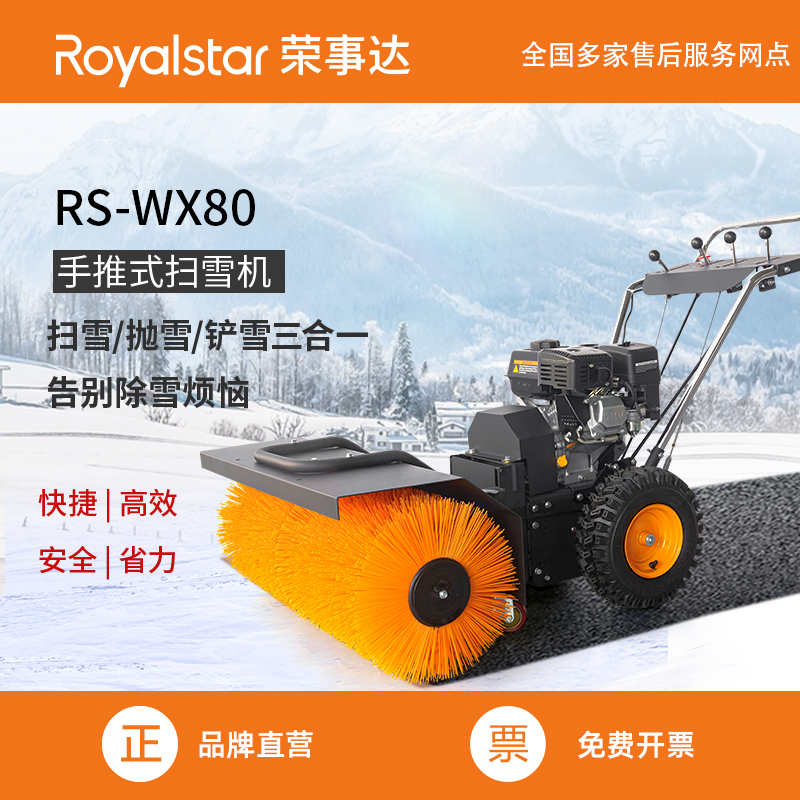 榮事達手推式掃雪機RS-WX80,潔凈能力強,適合多種場地使用,加寬掃雪寬度,大面積掃雪更輕松省力。