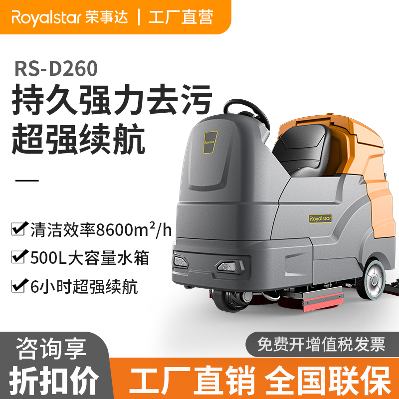 榮事達(dá)RS-D260大駕駛式洗地機(jī) 無需彎腰清潔一次搞定,清潔效率高省力更省錢一年勁省10W+